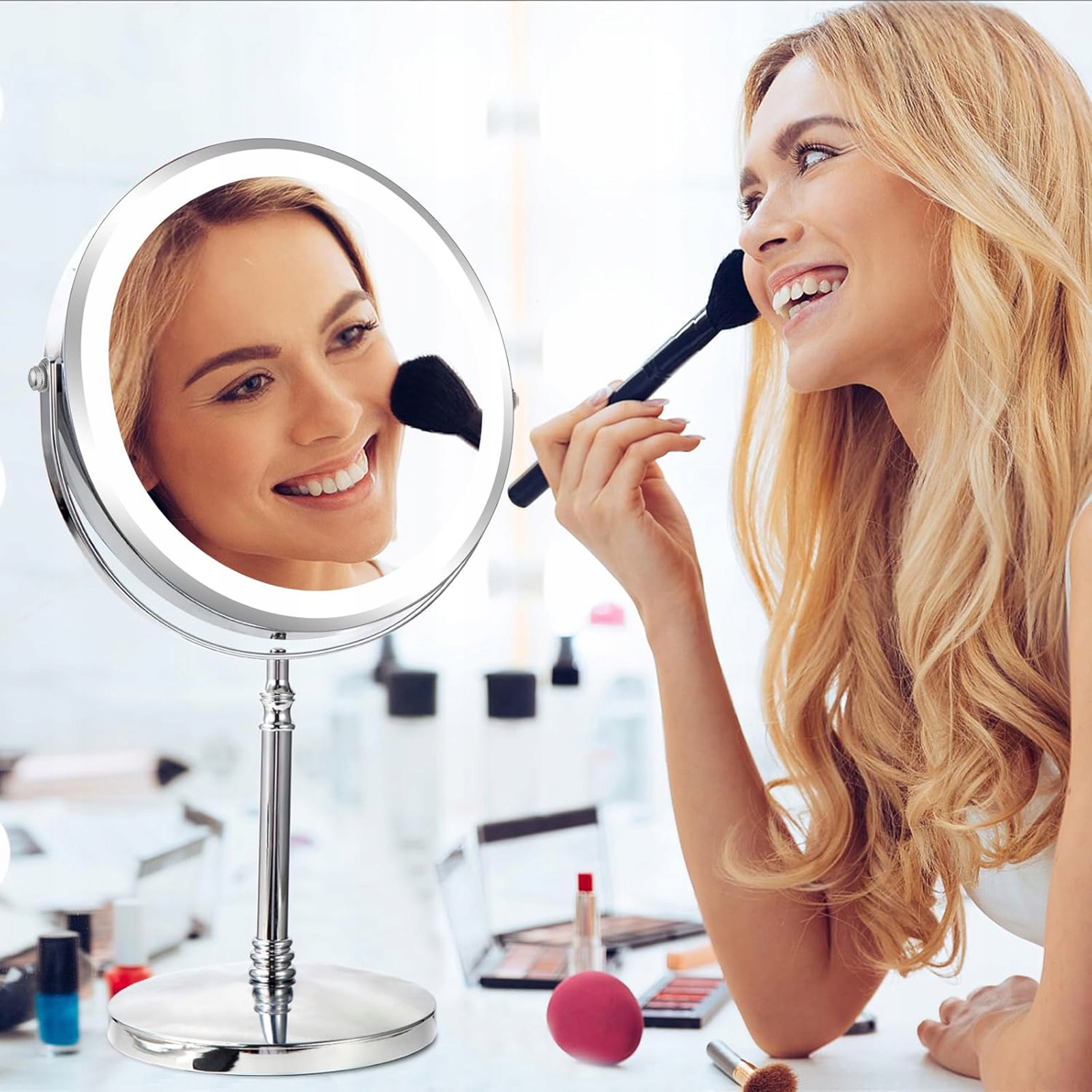 🔍 считается 1x/10x: двойное зеркало бритья составляет 20 см (8 дюймов) и обеспечивает идеальный, широкий вид. Зеркало с освещенным макияжем имеет зеркало 1x HD и 10 -кратное зеркало увеличения, четко показывая детали вашей кожи. Идеально подходит для ежедневного макияжа и ухода за лицом, таких как корректировка бровей, тушь, нанесение помады, бритье, укладку волос, обработка лица и ношение контактных линз. ПРИМЕЧАНИЕ. Держите правильное расстояние (до 10 см) от зеркала. Свет мягкий и может осветить все углы лица. Нажмите на выключатель датчика, кратко нажмите выключатель датчика, чтобы изменить цвет света, и нажмите в течение долгого времени, чтобы отрегулировать яркость света. Это обеспечивает точное воспроизведение цвета в различных условиях, таких как офис, на ходу и ночью. Косметическое зеркало также имеет функцию памяти, которая помнит последний требуемый уровень яркости.