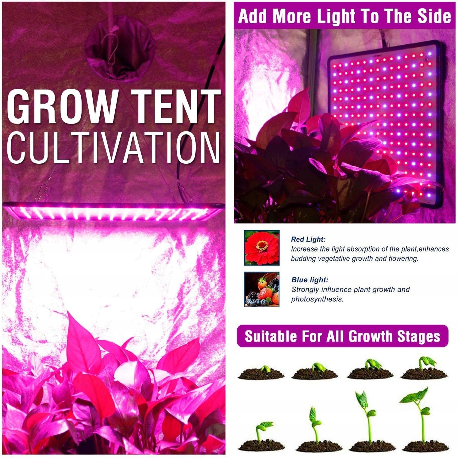 𝗜𝗺𝗽𝗿𝗼𝘃𝗲 𝗜𝗻𝗱𝗼𝗼𝗿 𝗣𝗹𝗮𝗻𝘁 𝗚𝗿 𝗼𝘄𝗶𝗻𝗴 𝗘𝗳𝗳𝗲 𝗰𝘁𝗶𝘃𝗲𝗹𝘆: эффективность равна эффективности традиционной газоразрядной лампы мощностью 300 Вт при потребляемой мощности всего 70 Вт (общая) и экономии на счета за электричество. Срок службы 50 000 часов и высокая эффективность светодиодных ламп для выращивания растений способствуют прорастанию и росту семян и т. д., улучшают качество цветов и продлевают время цветения. Это эффективно компенсировало недостаток естественного солнечного света. Большинство семян прорастают в течение 2 недель.