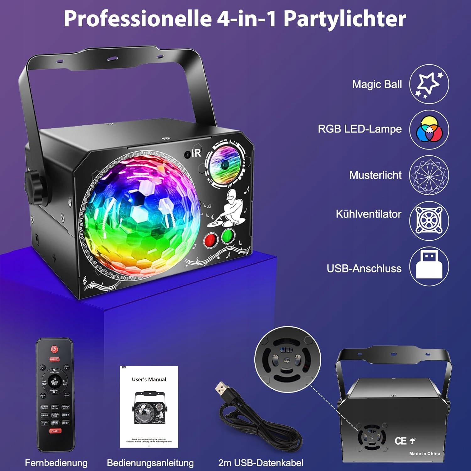 1: RGB -дисковочные светильники, красные/зеленые огни звезд с 60 конструкциями, 7 светодиодных огней RGB и черный ультрафиолетовый свет - комбинации в одном устройстве. Наше диско -освещение может привести к 60 различным световым эффектам и имеет площадь проекции до 500 квадратных футов для удовлетворения различных требований. С помощью пульта дистанционного управления вы можете легко включать и выключать устройство, отрегулировать эффекты освещения, светодиодный цвет фона, ультрафиолетовый свет, автомобильный режим и скорость двигателя. Примечание. Фоновые огни RGB и черный ультрафиолетовый свет не могут появиться одновременно.