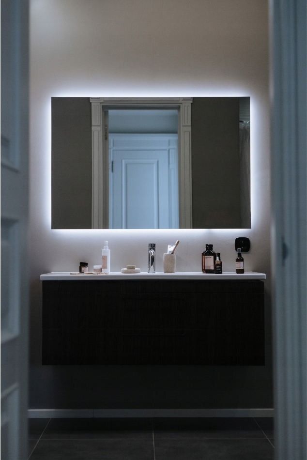 Зеркало 120x70 Светодиодная светодиодная ванная комната Каждое светодиодное зеркало может быть индивидуально адаптировано к вашим потребностям - как с точки зрения рисунка, так и цвета.