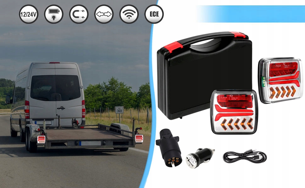 - 7-й беспроводной порт использует полосу 2,4 ГГц для передачи со скоростью 2 МБ/с и эффективное расстояние 20 метров. Это поддерживает быстрое и стабильное подключение сигнала между передатчиком и магнитной лампой с батареей и значительно снижает энергопотребление, что означает, что нагруженный прицеп лампа работает дольше.