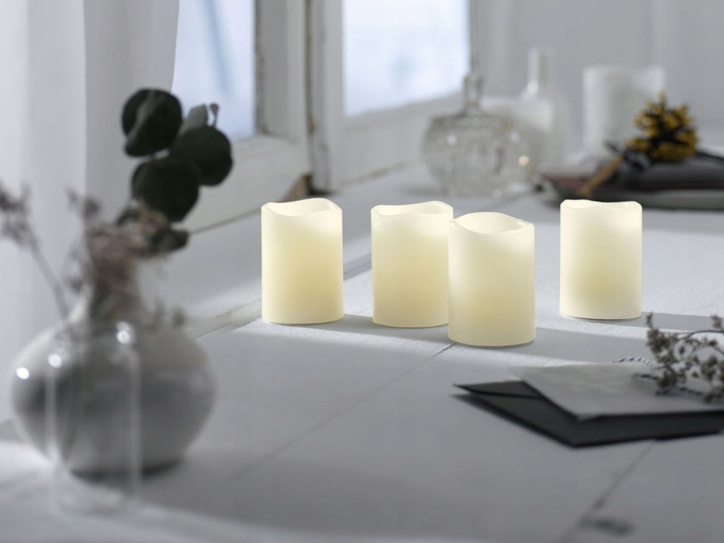 ** Рождественская магия в вашем доме! Четыре белых свечи, сделанные из настоящего воска, идеально подражают классическим свечам, но полностью безопасны благодаря светодиодной технологии. Их тонкий, теплый свет создает уютную атмосферу, идеально подходящую для длинных зимних вечеров с близкими