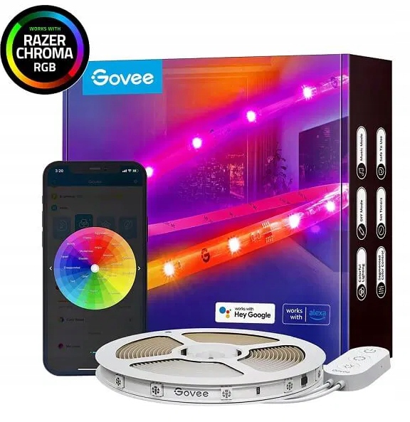 Инновационная технология RGBIC позволяет индивидуальную регулировку каждого сегмента световой полосы. Вы можете управлять яркости, музыкальными режимами, цветами и эффектами, используя домашнее приложение Govee.