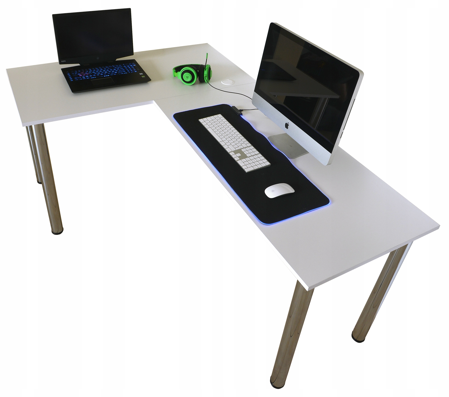 Світлодіодний базовий кутовий ігровий стіл/стіл, білий