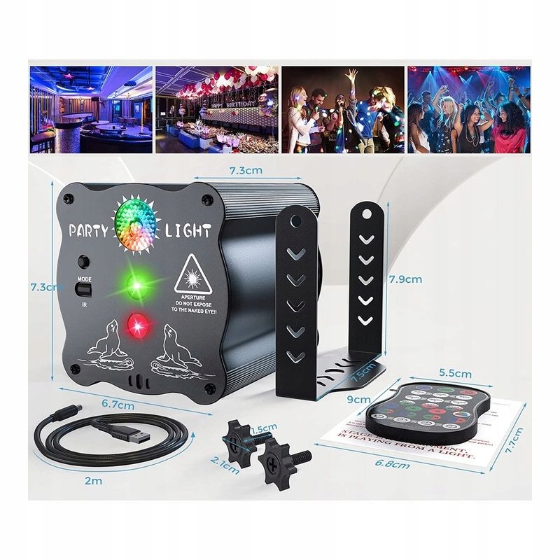 Світлодіодний лазерний проектор RGB DISCO DJ STROBOSCOPE з 60 шаблонами + дистанційне керування 8 Вт