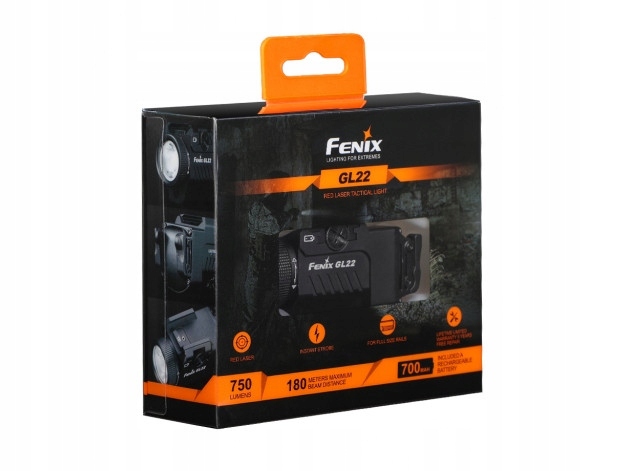 Fenix GL22 — первый фонарь-пистолет от Fenix, разработанный специально для пользователей огнестрельного оружия. Фонарик подходит для большинства полноразмерных пистолетов с планкой Glock или MIL-STD-1913. Легкая, низкопрофильная конструкция позволяет успешно использовать Fenix GL22 при скрытом ношении оружия. Корпус Fenix GL22 изготовлен из прочного алюминия A6061-T6 и покрыт твердым анодированием HAIII. Это износостойкое покрытие защищает алюминий от окисления и упрочняет его поверхность. Фонарь соответствует требованиям класса IP66, а это значит, что он устойчив к ударам, влаге (сильный дождь и брызги) и проникновению мелких частиц пыли, поэтому его можно использовать для тактического применения. Монтажный зажим отличается повышенной устойчивостью к отдаче. Прочность сборки и точность лазера (2 МОА) были подтверждены в ходе испытаний на разрушение, в ходе которых фонарь подвергся 10 000 ударным испытаниям и моделированию 5 000 выстрелов боевыми патронами. В фонаре используется сильный Светящийся диод SST20, линза TIR и гладкий отражатель, которые обеспечивают концентрированный свет потоком до 750 люмен. Дальность отраженного света — до 180 м, что позволяет эффективно определять цели и вести стрельбу на больших дистанциях.