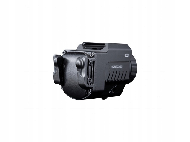 Фонарик дополнительно оснащен лазерным целеуказателем с длиной волны 640-660 нм и оптической мощностью лазера < 5 мВт. Лазерный луч указывает точку прицеливания, что особенно полезно в ситуациях, когда нет времени правильно принять стойку или выровнять прицельные приспособления.