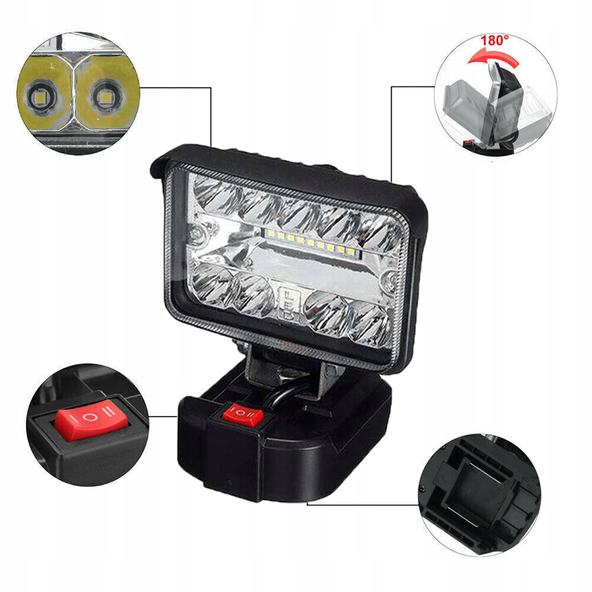 ● Совместим с литий-ионными аккумуляторами Makita 18v-лампа с аккумулятором со светодиодной конструкцией, идеально подходящей для литий-ионных аккумуляторов 18 В, предоставит вам стабильный и надежный источник питания. Вам больше не нужно беспокоиться о источнике питания - наслаждайтесь эффективным светом в любом месте и времени. Важные примечания: батареи Makita не включены в набор! Будь то в мастерской, для внешнего ремонта или снаружи, эта светодиодная рабочая лампа обеспечивает первое классное освещение. Независимо от того, нужно ли вам точечное или общее освещение, вращаемая голова 180 -дегрит соответствует требованиям различных рабочих ситуаций. Примечание. Чтобы отрегулировать угол света, вам нужен ключ Allen, который не находится в рамках доставки. Не поддерживайте правила яркости. Вы можете выбрать степень яркости 1 или 2 в зависимости от ситуации, чтобы батарея (не включенная в набор) может быть более долговечным и работать дольше! Возьмите лампу аккумулятора на любые усилия без усилий на рабочем месте и всегда обеспечивает эффективную поддержку освещения. Эта светодиодная рабочая лампа подходит не только для семинаров и гаражей, но также может использоваться снаружи и для активного отдыха. От домашнего ремонта до приключений для кемпинга, светодиодная лампа батареи представляет собой необходимый инструмент освещения