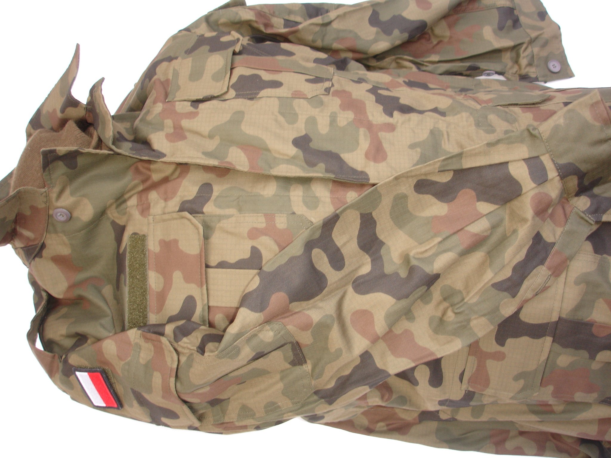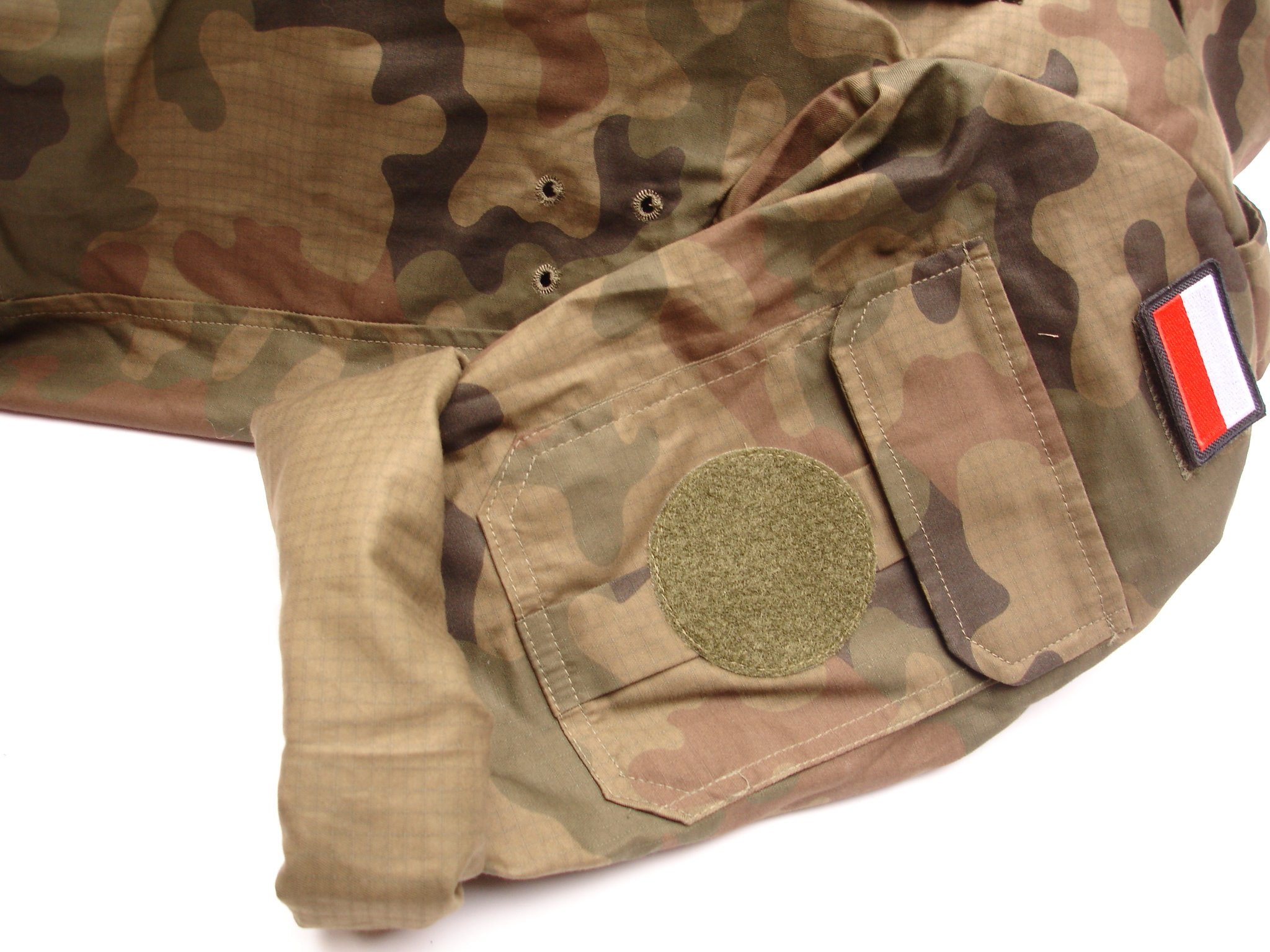 - Есть съемные карманы на рукавах на липучке или вшитые символы польского флага.