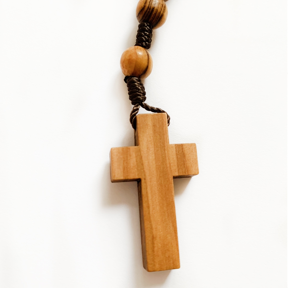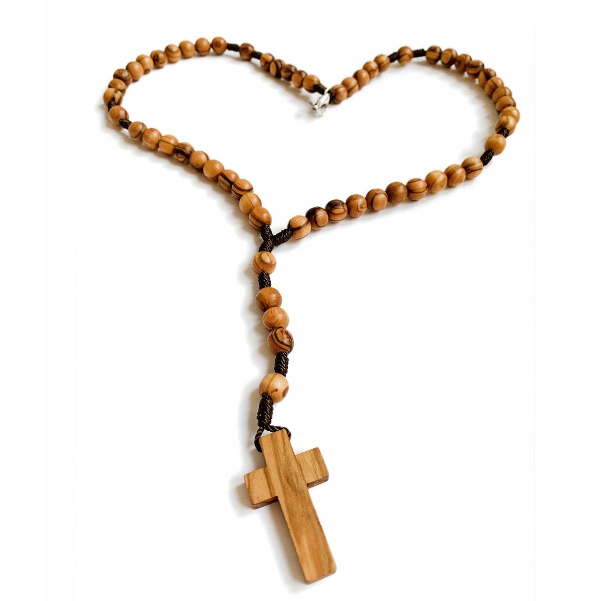 Четки для подвешивания на шее и для молитвы, деревянные на веревочке из оливкового дерева, изготовленные вручную в Иерусалиме небольшой местной компанией. p >