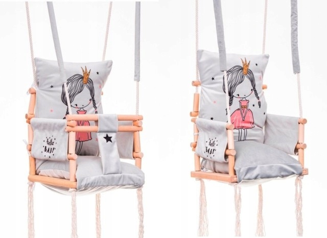качание, сделанное из тонкого бархатного материала, который очень мягкий и деликатный на ощупь и очень прочный. Преимущество материала заключается в качеством чистки, ограничивающего поглощение воды- каждая пролитая жидкость образуется в капли и не проникает в внутреннюю часть ткани. Когда ткань испачкается, все, что вам нужно сделать, это свести ее аккуратно. Качание установлено на прочном хлопковом Fi 10 канатах, которые выдерживают нагрузку примерно до 25 кг. Веревки длиной 8 м, что идеально соответствует 2,5 -метровой высокой комнате. Веревки можно скорректировать сами.