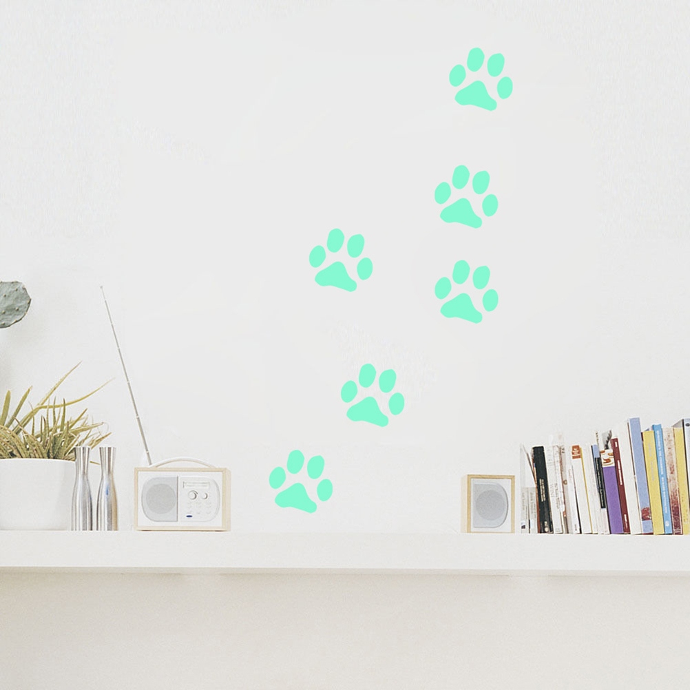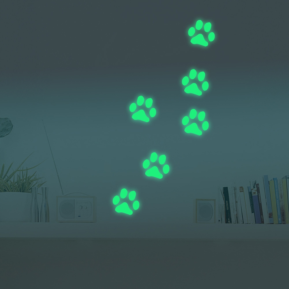 ✅1 x set 6pcs лапа ночные светящиеся наклейки, сияющие в темных стенах съемных наклеек, наклеек лап для детского детского сада детского сада декоративные украшения стены на стены 8,5x8.5 см p>