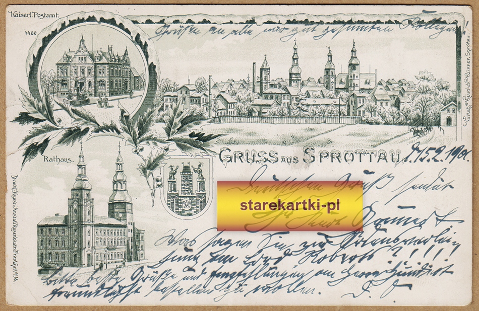 Szprotawa / Spottau - Post - Герб - зима 1901 !!