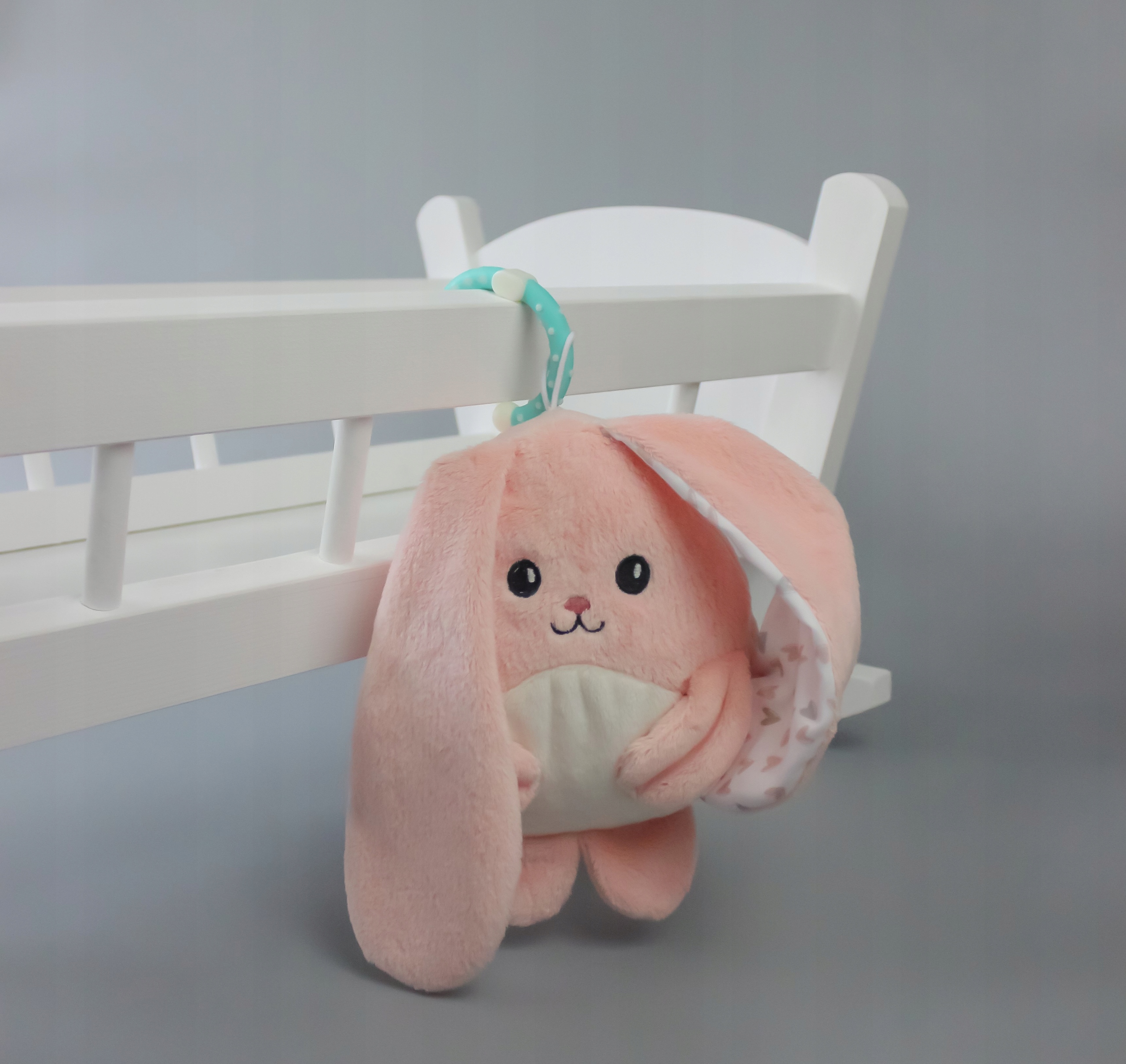Шепчущий кролик Милусь изготовлен из материалов, безопасных с первого дня жизни ребенка. Талисман можно безопасно стирать в машине при температуре 40 градусов (после снятия гудящего механизма).