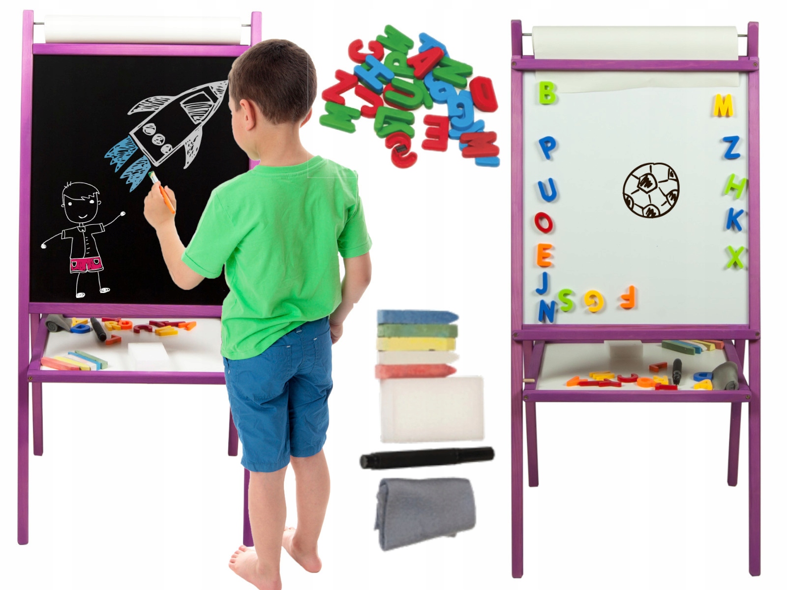 Деревянная, двойная и складная магнитная доска -отличная идея для творческого веселья ваших детей. Обучение через игру - лучший способ правильно развивать детей. Правление является идеальным местом для практики первых букв и цифр. Это также отличное место для развития художественного смысла, делая отличные рисунки. С одной стороны, это магнитная доска для написания с маркерами, с другой - традиционная доска мела. На вершине платы, установленной на вершине пластины - после ее использования можно заменить. Обменные ролики доступны в нашем магазине. Влиять на развитие художественных способностей ребенка. Для написания, рисования, подсчета и творческого творения.