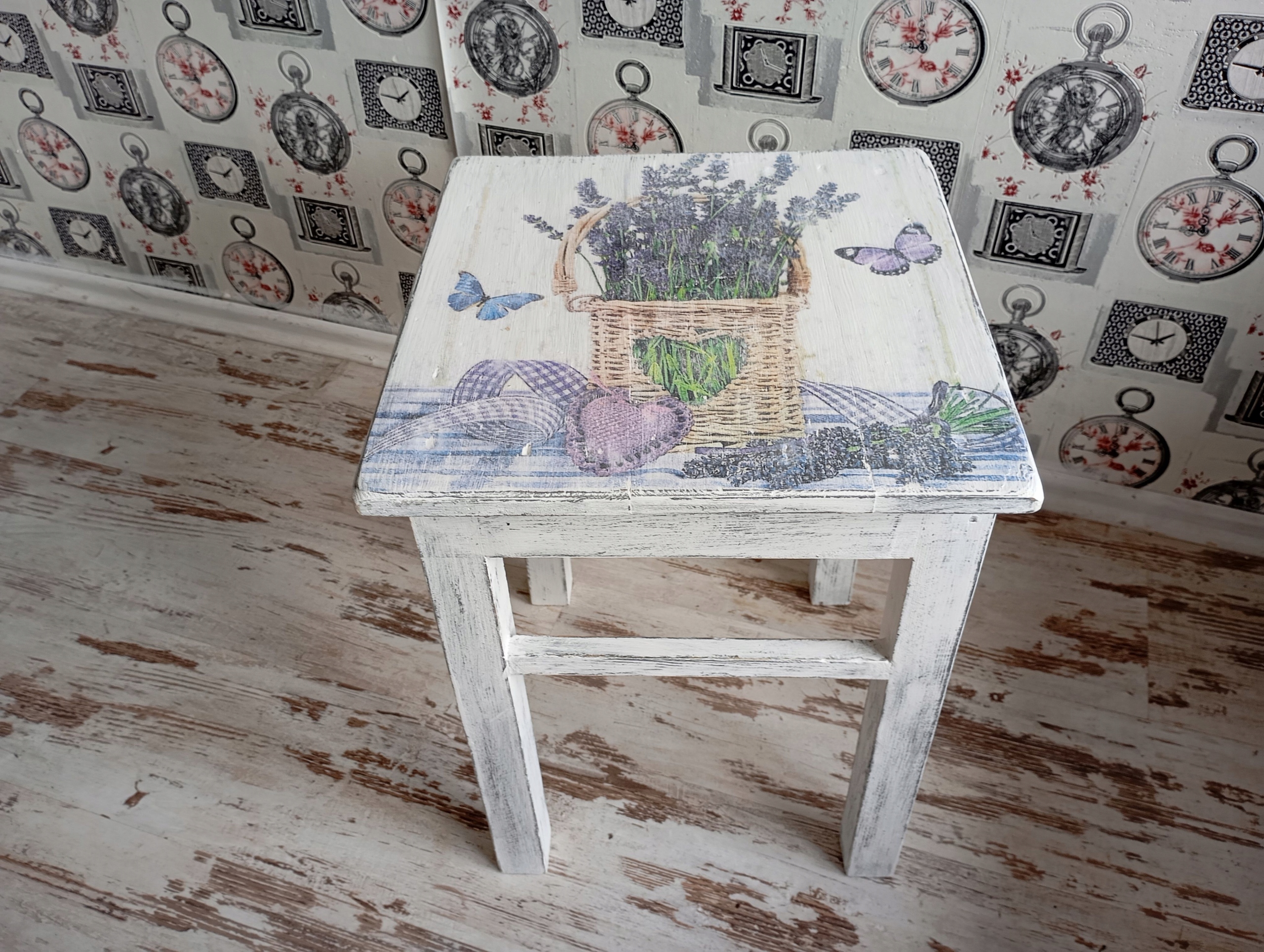 Деревянный табурет (стол) в стиле шебби-шик.