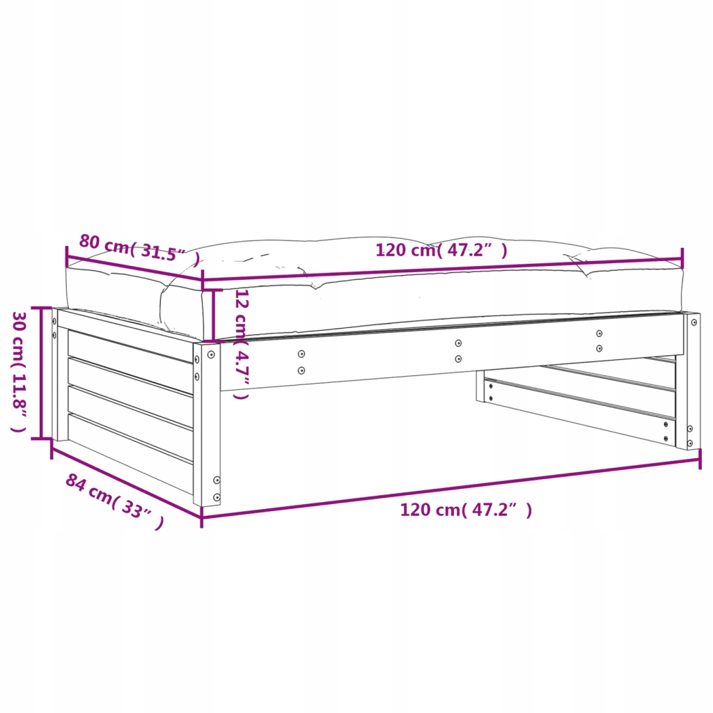 Табурет для ніг з сосни з антрацитовою подушкою, 120x84x30 см, чорний
