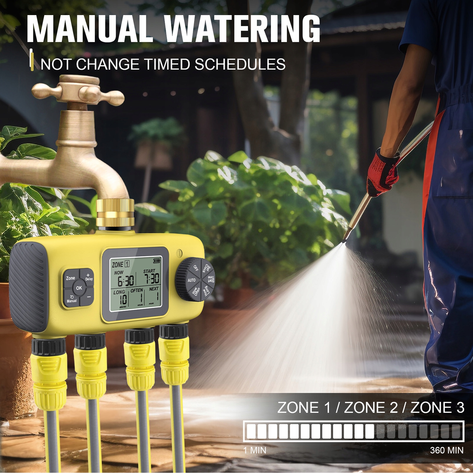 1. [4 Управление зоной] Таймер орошения имеет 4 гнезда, независимо программируемого, вы можете настроить время начала, частоту и продолжительность.