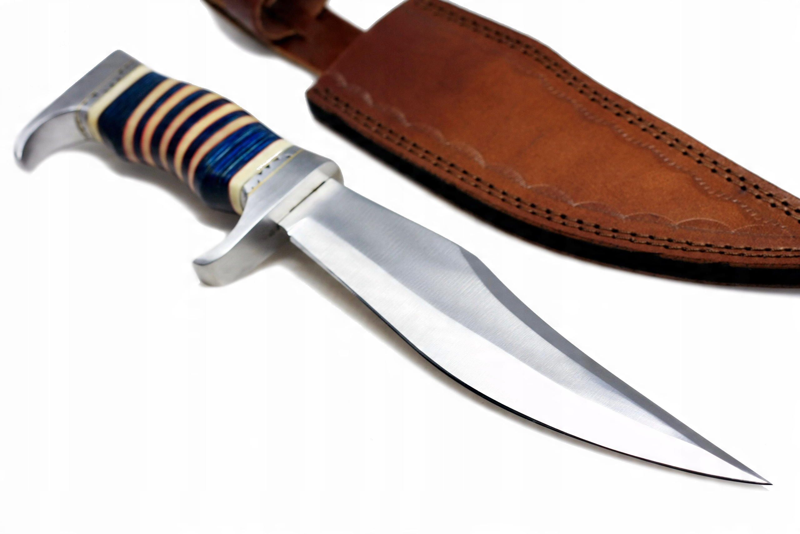 нож боуи ручной работы, который работает в самых требовательных ситуациях. Клинок, изготовленный из высококачественного стали D2 благодаря которого он долго поддерживает свои резьбые свойства без необходимости заточить, идеально подходящие на улице - охота, рыба, кемпинг. Ручка, сделанная из верблюжьих костей в сочетании с деревом Пакки . Обложка натуральной кожи теленка обеспечивает идеальную защиту лезвия.