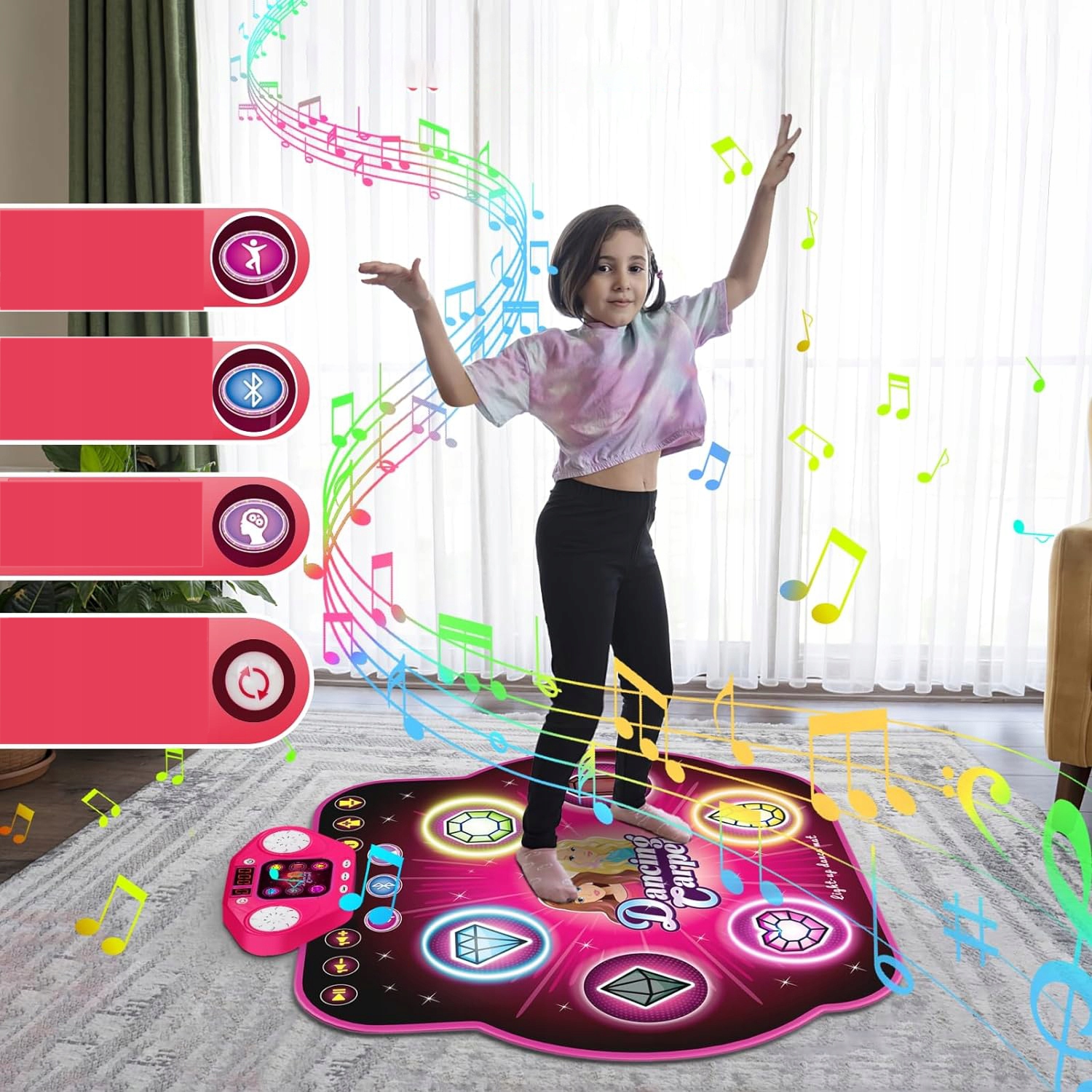 - Многоуровневое развлечение: 🎵 Танцевальный коврик предлагает 27 уровней сложности, разделенных на 3 уровня (легкий, средний, сложный) и 5 режимов игры (медленный танец, вызов с 4 клавишами, вызов с 6 клавишами, режим Bluetooth, режим памяти).