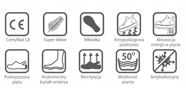 - Знак CE — обувь соответствует основным требованиям Регламента (ЕС) 2016/425 Европейского парламента и Совета.