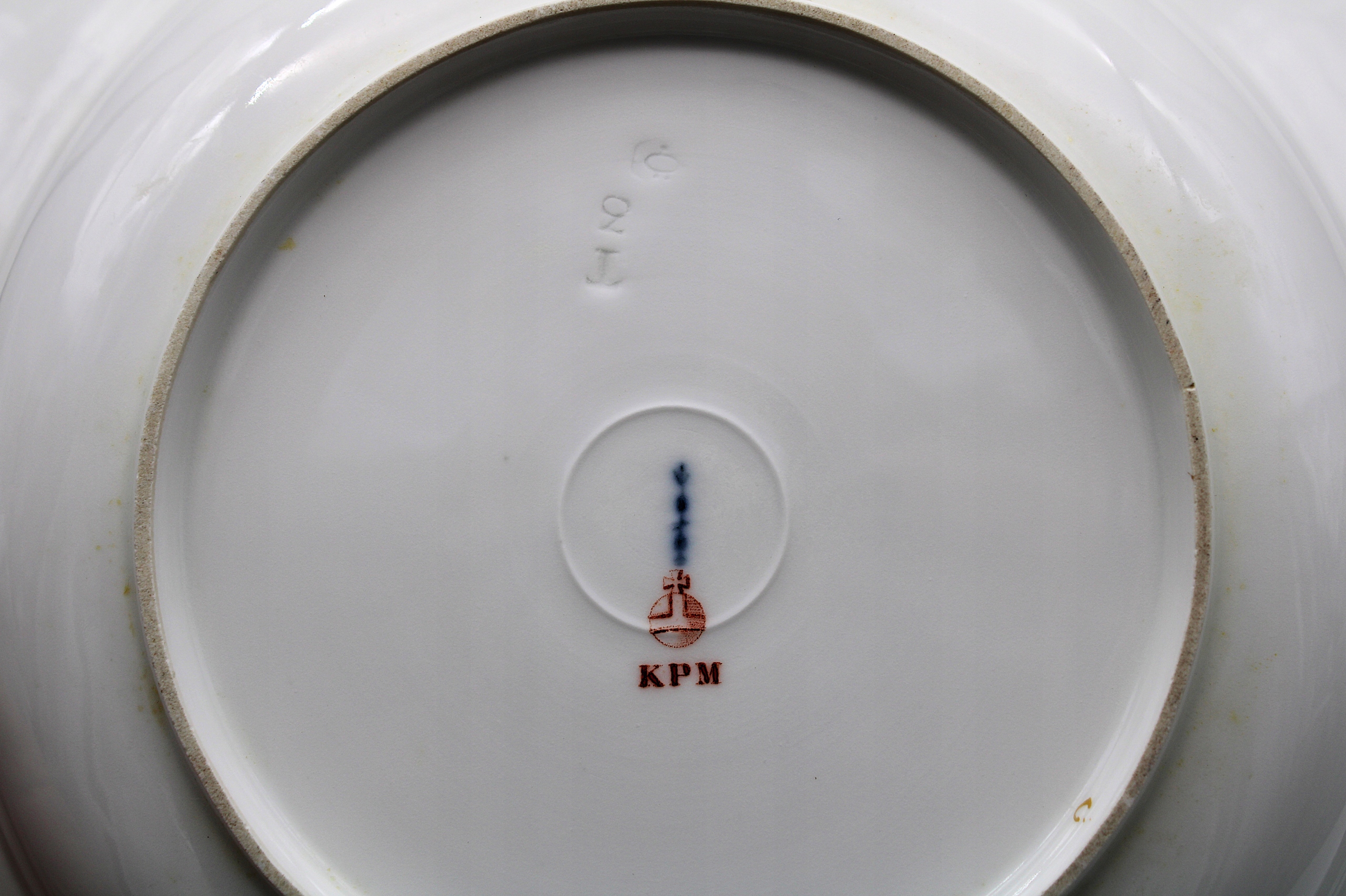 Я рекомендую старую тарелку фарфоровой кпм Берлин. Вручную - все ** условие, как на сканировании, имеет небольшой след, показанный на фотографии, почти не видимой