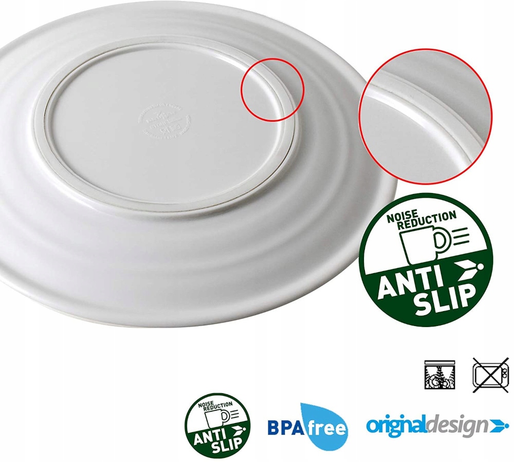 Все элементы набора оснащены анти -скольжкой системой против скольжения. Каждое блюдо снизу приклеено резиной. Это делает блюда стабильными, и использование во время путешествия полностью безопасно и удобно.
