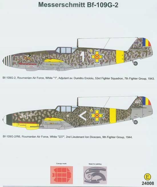 * Bf 109G-2 — «белый 1», Адъютант пр. Дурнитру Энчою, 53-я истребительная эскадрилья, 7-я истребительная группа, ВВС Румынии, 1943 год