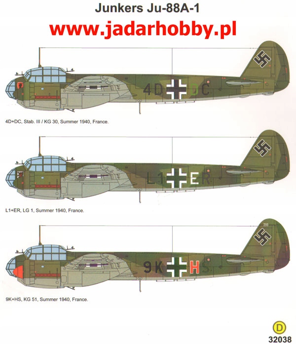 Ju 88A-1, 9K+HS, KG 51, лето 1940 г., Франция