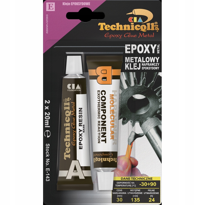 ЭПОКСИДНЫЙ КЛЕЙ ДЛЯ МЕТАЛЛОВ 2X20 ML E-143 ПРОИЗВОДСТВА TECHNICQLL