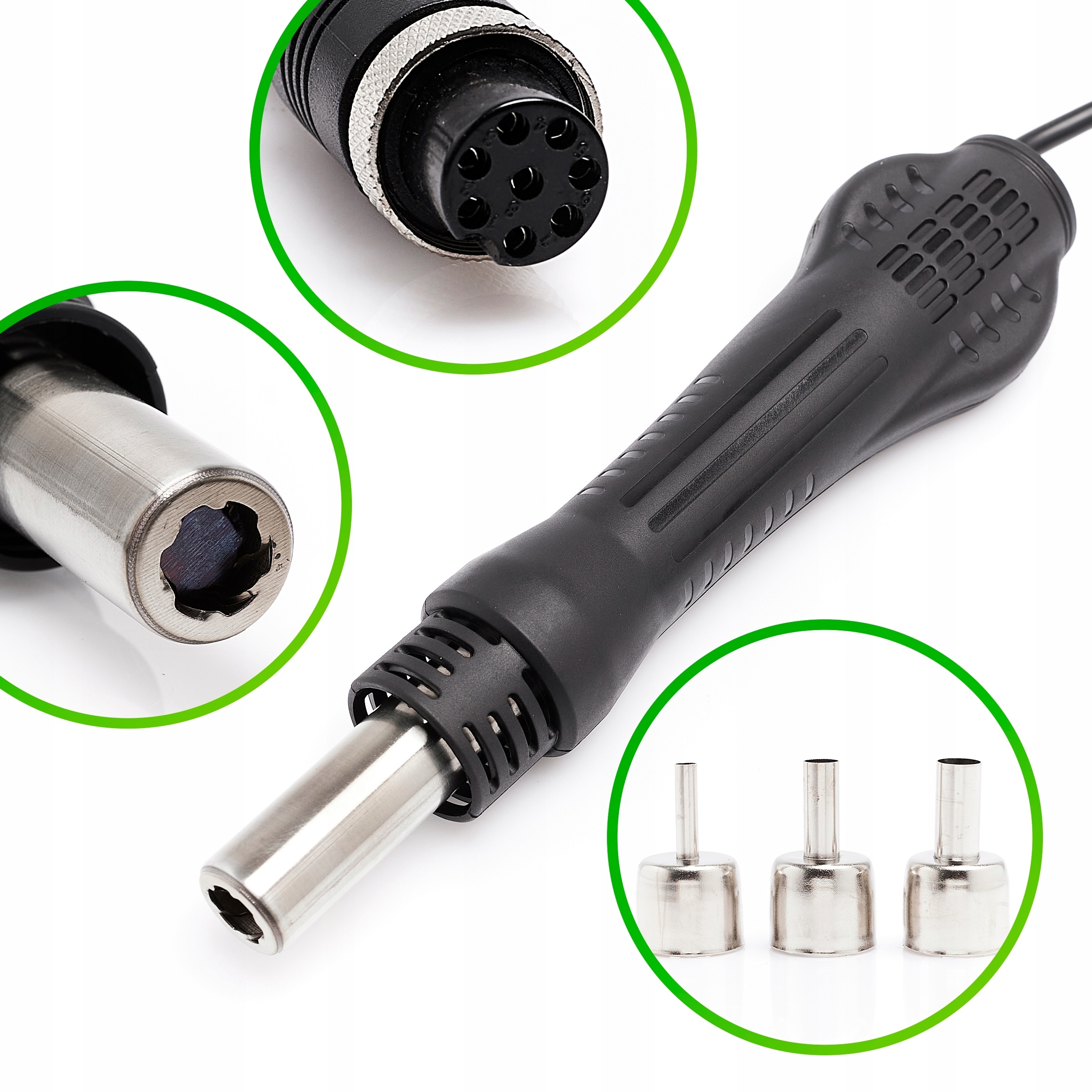 ⚡ Предназначен для пайки таких компонентов, как SOIC, QFP, PLCC, BGA, SMD и т. д., а также для нагрева, нагрева термоусадочных трубок, оттаивания, растворения клея, сжигания красок, предварительного нагрева и т. д.
