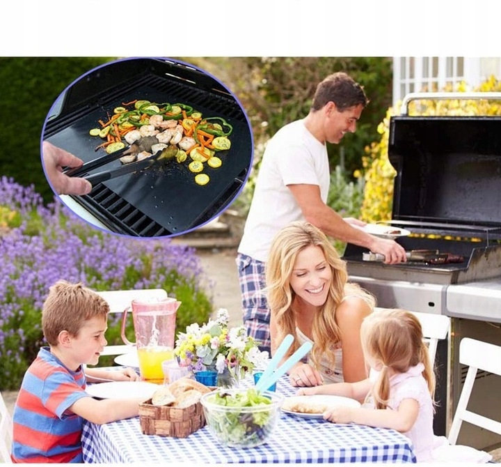 - коврик для гриля изготовлен из стекловолокна с покрытием из ПТФА, одобренного для контакта с пищевыми продуктами. Конструкция толщиной 0,2 мм гарантирует неизменность вкуса барбекю и устойчивость к высоким температурам до 260°С, равномерному нагреву, более быстрому приготовлению. Коврики для гриля блокируют дым и пепел и делают гриль более полезным для здоровья.