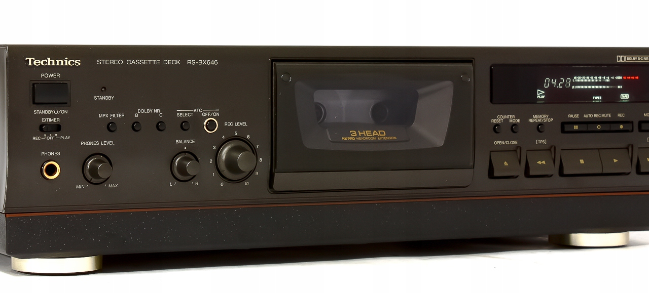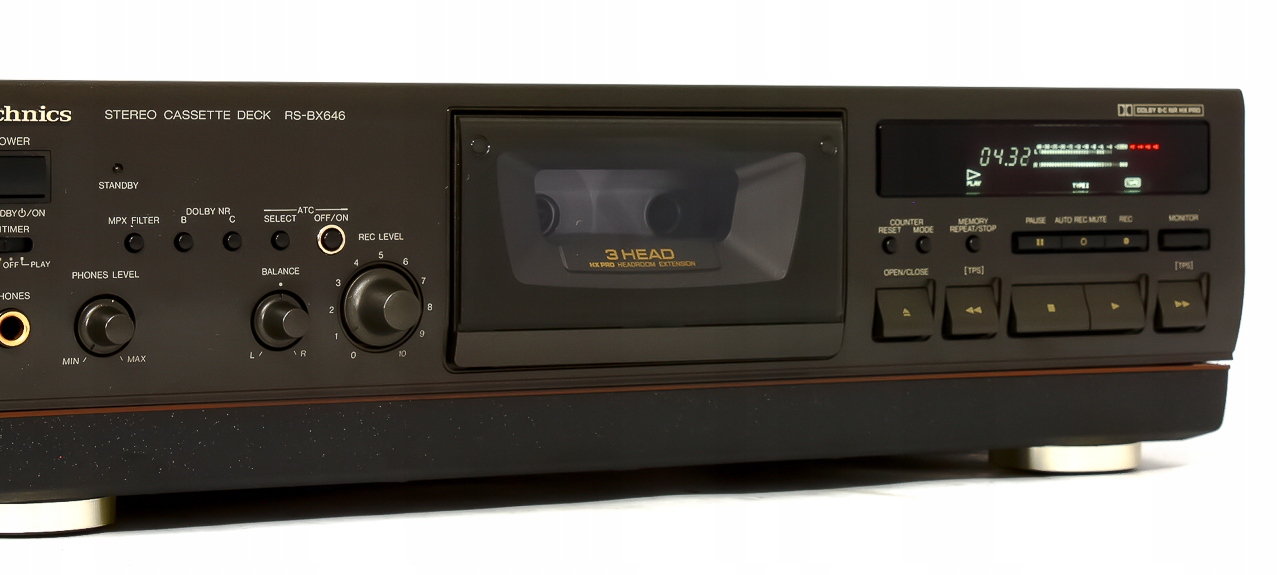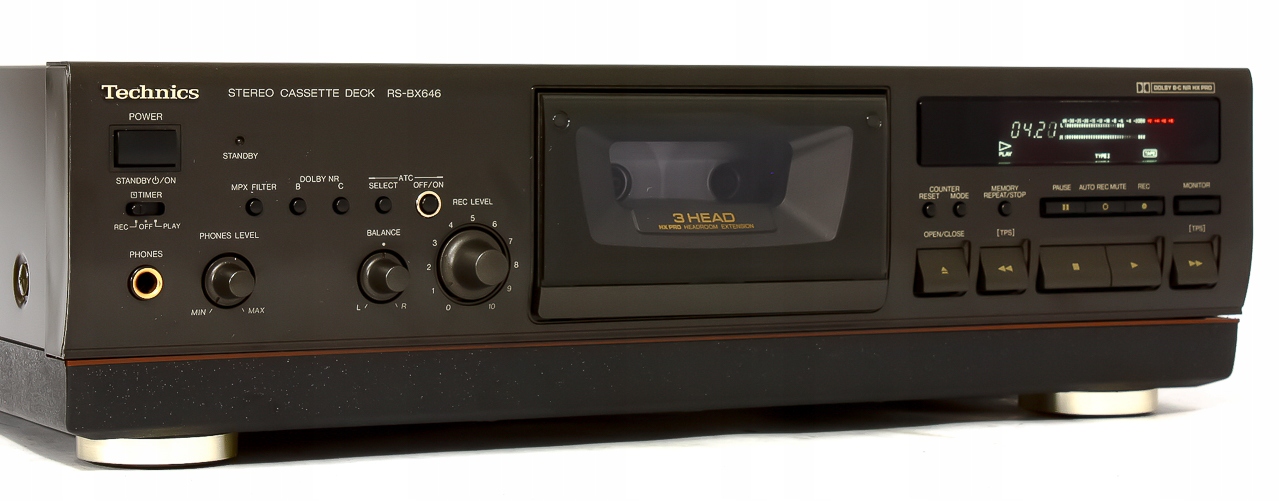 Тема продажи - один из лучших магнитофонов Technics из одной из последних серий Technics. Уже после первоначального осмотра у нас сложилось впечатление, что мы взаимодействуем с приличной колодой. Устройство массово построено -сплошная антивибрационная основа и мрачно известная передняя панель Darkographit, хорошо известная из других технических конструкций. Кассет -карман в центре и очень выразительный дисплей составляют уникальный дизайн. У RS-BX646 есть все, что должен быть оснащен магнитофоном самозамирительной компании. Расширенная система Dolby контролирует очистку звука, функция ATC позволяет настроить и записывать любой тип магнитной ленты, а используемые головки с высоким классом делают звук аналогичным для аудио -путей CD. Deck имеет регулируемый выход для наушников, который понравится пользователям наушников. Электрическое открытие/закрытие кармана - он работает тихо и точно. Подводя итог, RS-BX646 Я рекомендую его человеку, который заботится о модели высокой палубы от Technics. Если у вас есть система Hifi Technics, и у вас еще нет магнитофона, не ждите, такая возможность не произойдет быстро;)