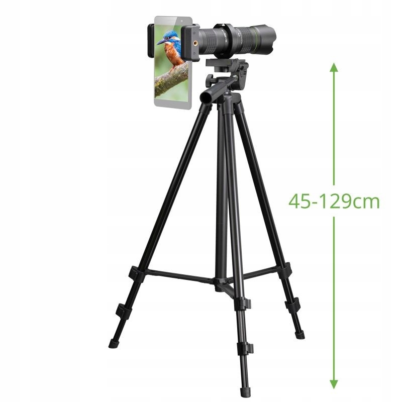 Телеобеспеленный объектив включен в алюминиевый штатив, который обеспечивает стабильную базу для фотографии с использованием смартфона. Штатив легкий, долговечен и имеет емкость до 3 кг, что обеспечивает стабильные условия для четкого фотографирования даже при длительном времени экспозиции.