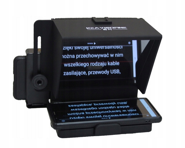 Compact Telepromptter, предназначенный для отображения текста с телефона, является идеальным инструментом для работы в вашей домашней студии.