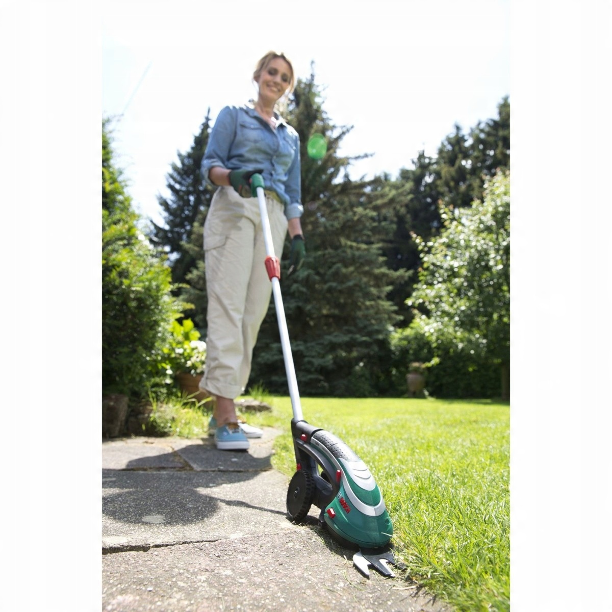 Съемные колеса позволяют очень комфортно работать с высокими кустами и живой изгородью.