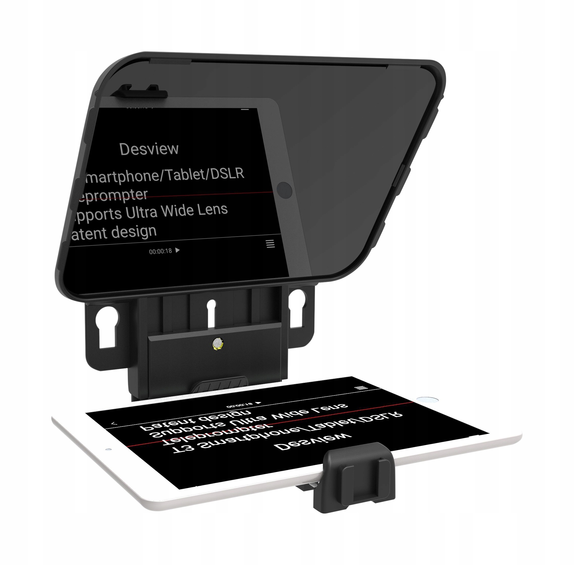 В телесуфлере Desview T3 используется высококачественное 26-слойное стекло, разделяющее световой луч (70/30). Это обеспечивает высокую проницаемость 97%. Благодаря таким параметрам отсутствует эффект двойного отражения, а текст, читаемый с телесуфлера, четкий и выглядит практически так же, как если бы вы читали его прямо с экрана смартфона.