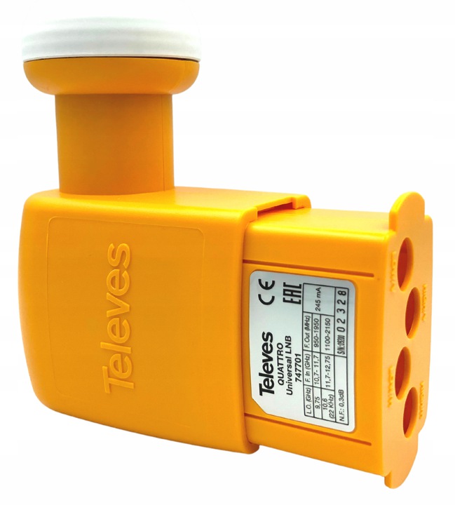 Televes 747701, так как все продукты этого бренда характеризуются высококачественными и очень хорошими параметрами работы. Его можно использовать для получения любого телевизионного спутника. Высококачественное пластиковое корпус гарантирует адекватную защиту электроники в середине