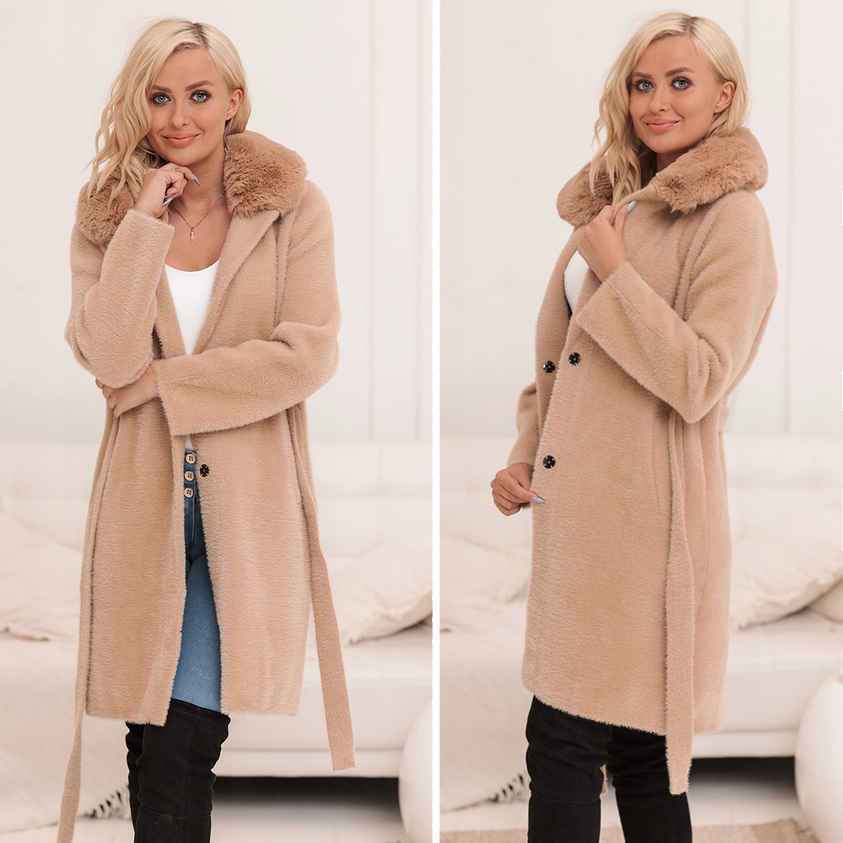 ТЕПЛА ШУБА АЛЬПАКА З ХУТРОМ З ПОЯСОМ КОЛЬОРІВ