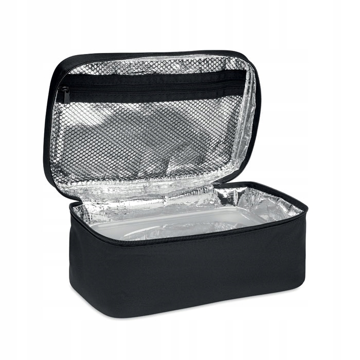 Охлаждающая сумка от 600D RPET содержит контейнер с множественным использованием от PP с емкостью 1900 мл. Держите здоровье и возьмите домашний обед на работу или куда угодно. Этот компактный контейнер будет держать вашу еду свежей в течение дня. Оставьте обед в домашних условиях и наполните сумку напитками, чтобы расслабиться днем в парке или на пляже. Подкладка с алюминиевой фольгой 2 мм.