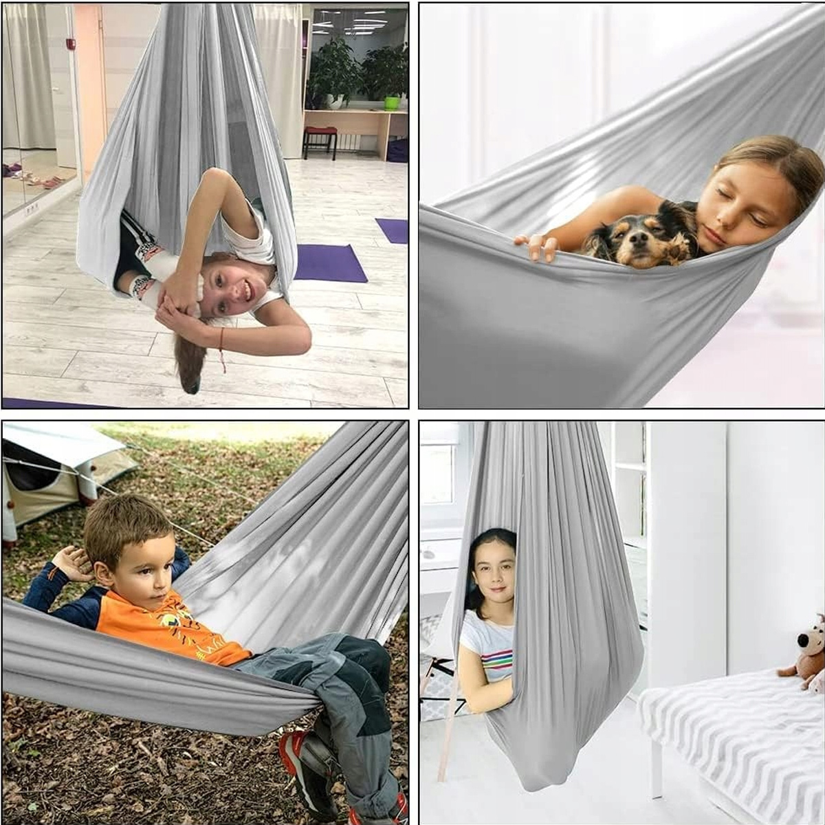 100% нейлон высокой плотности, благодаря которому он легкий и устойчивый к разрыву, а его грузоподъемность составляет до 90 кг (200 фунтов). Супер -мильд, эластичный со стороны и защищен от переворачивания. Структура делает удовольствие и расслабление для детей проще и безопаснее, когда им нужно разгрузить стресс. Терапевтическое качели с тканью для качания в комнатах дает детям много возможностей играть на качелях, чтении, соли и вращении.