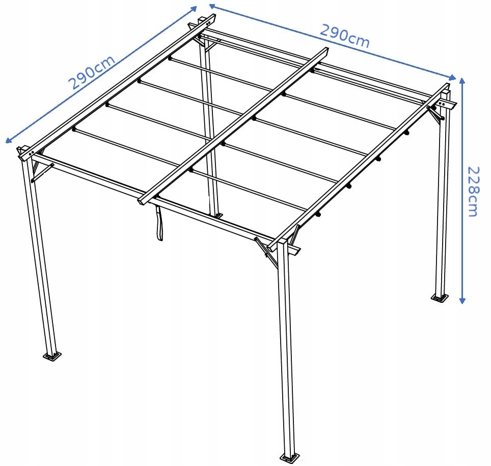 Террасная пергола SPRINT Plus 3x3 в оттенках антрацит/серый — отличный выбор, если вы ищете функциональную и эстетичную крышу для террасы. Эта уникальная пергола Hardmaister имеет стальную конструкцию, гарантирующую надежность и долговечность на долгие годы. Необычный каркас перголы состоит из стальных труб разного размера: 60х60мм толщиной 0,9мм и 60х30мм толщиной 0,7мм. Благодаря стальным трубкам диаметром Φ18 мм и толщиной 0,5 мм конструкция беседки не только прочная, но и долговечная, обеспечивая надежную опору.