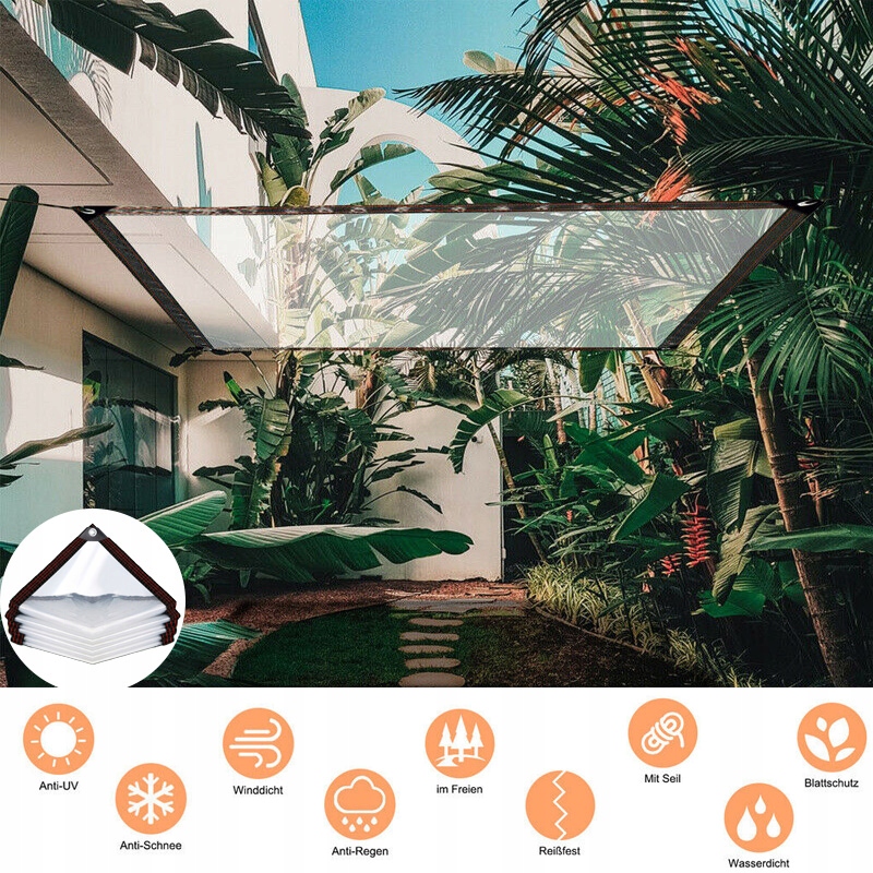 ⏺ Премиум Материал: Ткань загара состоит из высококачественной, прочной полиэтиленовой ткани. Прозрачный брезент оснащен практическими и долговечными швами из нержавеющей стали, которые облегчают крепление.