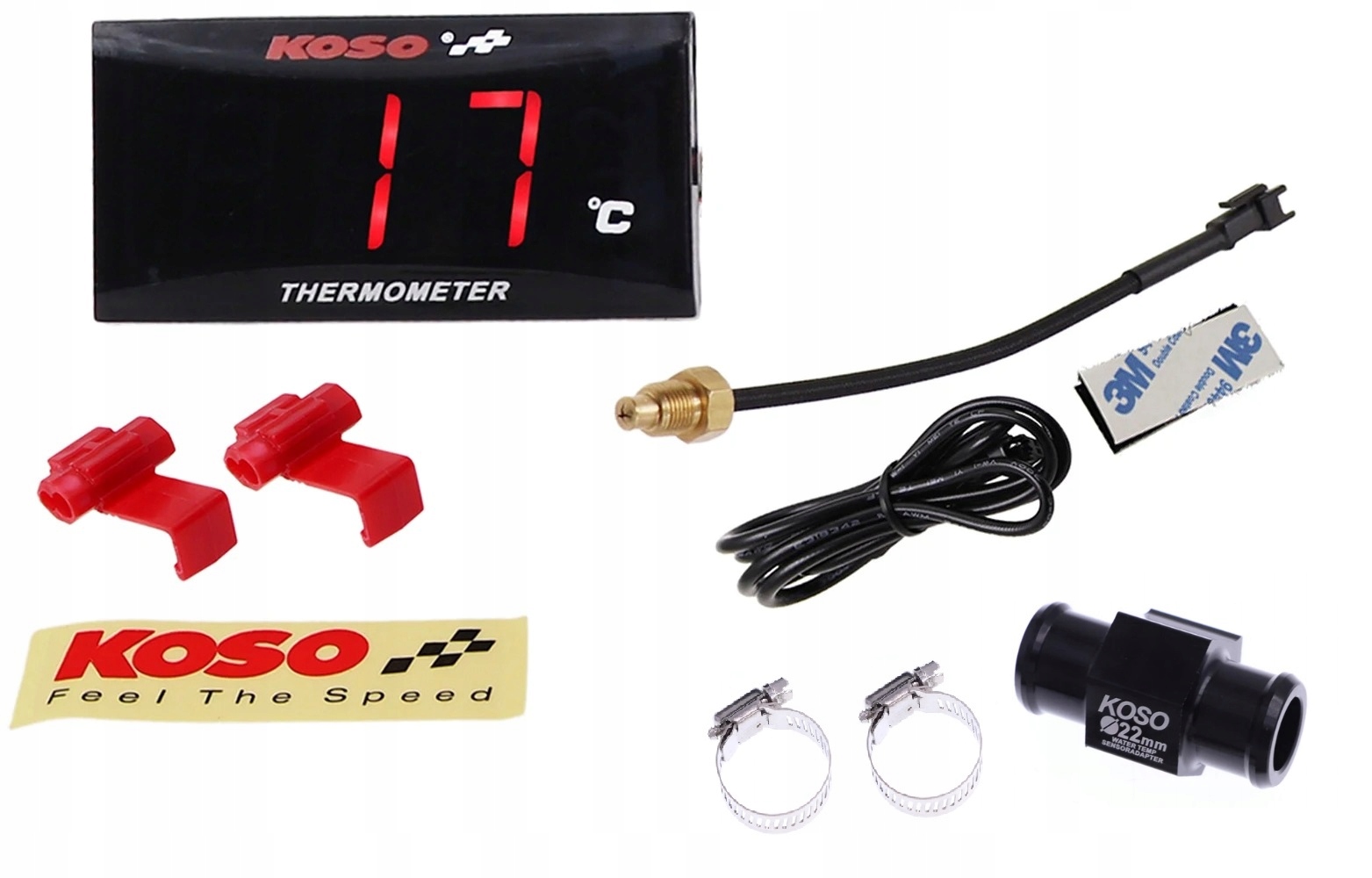 Термометр індикатор температури двигуна ремінця KOSO SLIM - червоний 20-22мм