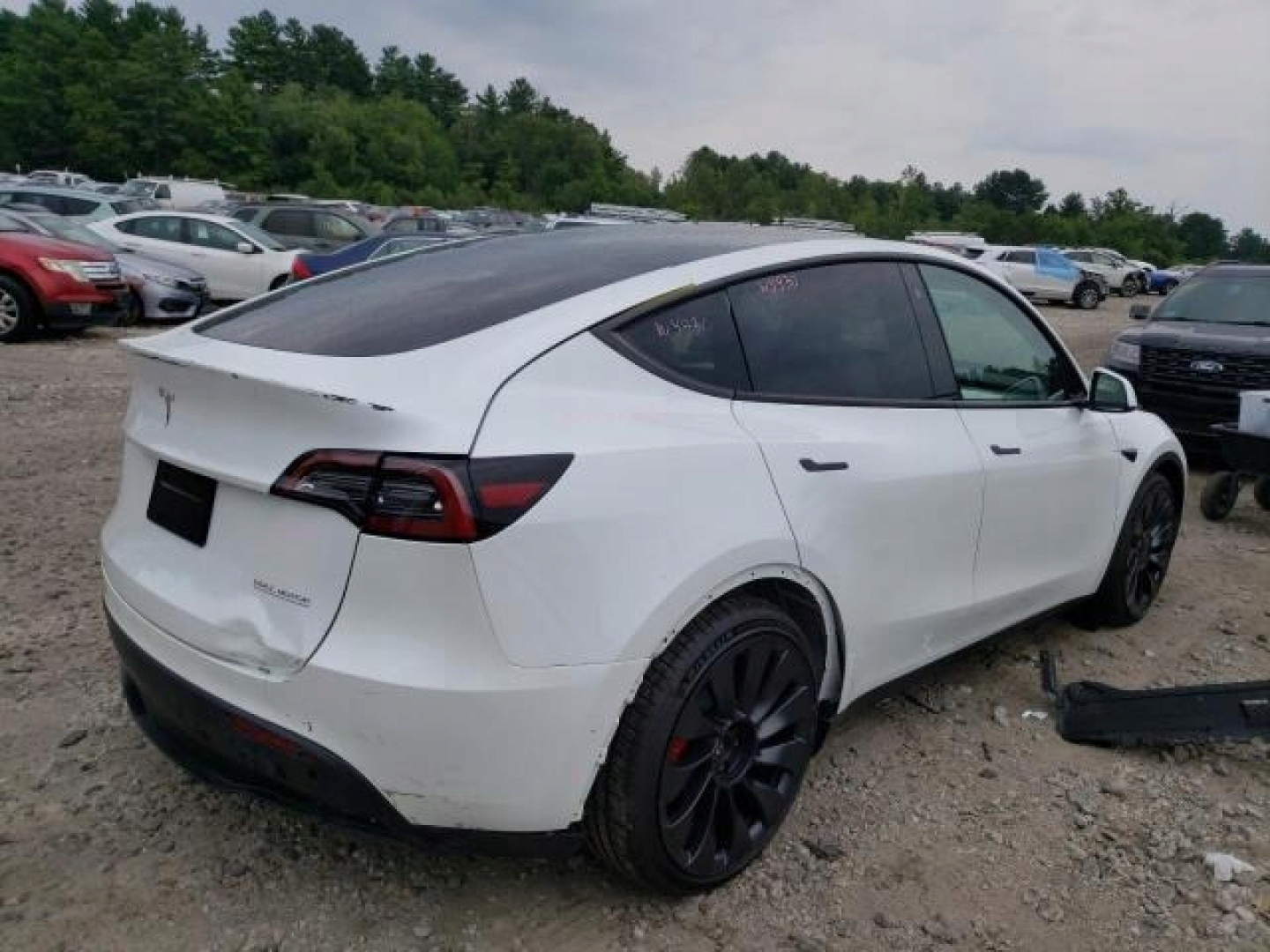 tesla y, автомобиль запускается и проезжает от страховой компании.