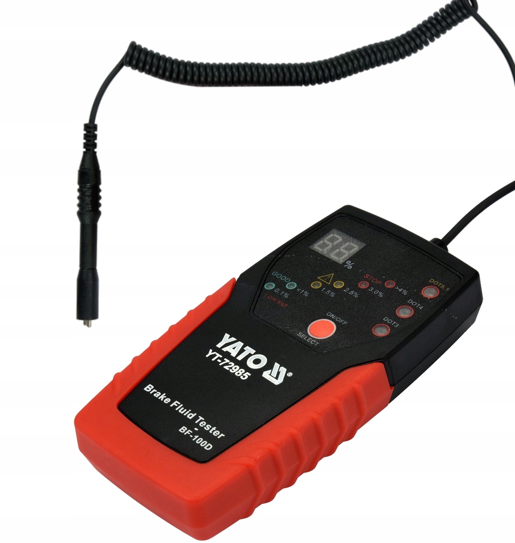 Профессиональный тестер тормозной жидкости YT-72985 подходит для использования с жидкостями DOT3, DOT4, DOT5.1.