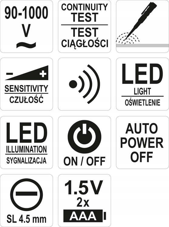 YATO VOLTAGE TESTER LED ИНДУКЦИОННОЕ НАПРЯЖЕНИЕ 90-1000
