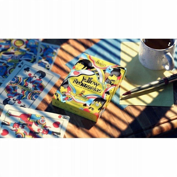 Специальное издание игральных карт, вдохновленное анимационным фильмом 1968 года. Присоединяйтесь к Полу, Джону, Джорджу и Ринго в их путешествии на Желтой подводной лодке в Пепперленд, чтобы спасти местных жителей, любящих музыку, от Синих злодеев! У них нет шансов против крутых мелодий Великолепной Четверки. Игральные карты премиум-класса с изображением любимых фанатами персонажей и иллюстраций из культового анимационного музыкального приключения. Карты проиллюстрированы необычайно подробно и красочными, яркими изображениями. «Знаете, все дело в уме!»