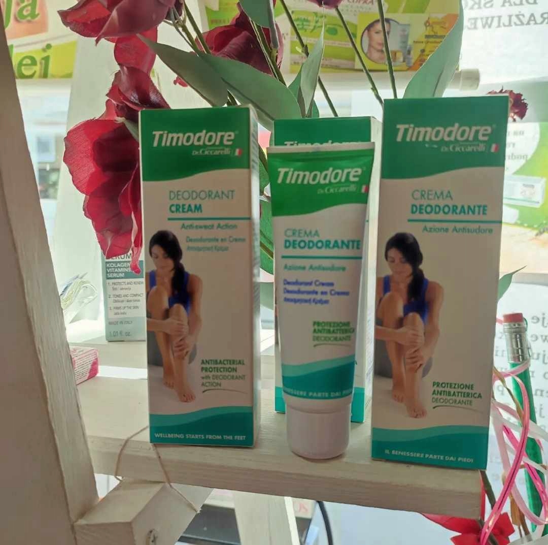 Крем-дезодорант Тимодор 50 мл был разработан для противодействия чрезмерному потоотделению и неприятному запаху ног. Благодаря эссенции тимьяна с антибактериальными свойствами и другим активным ингредиентам, он использует ферментативный механизм дезодорации, учитывающий физиологию стоп.