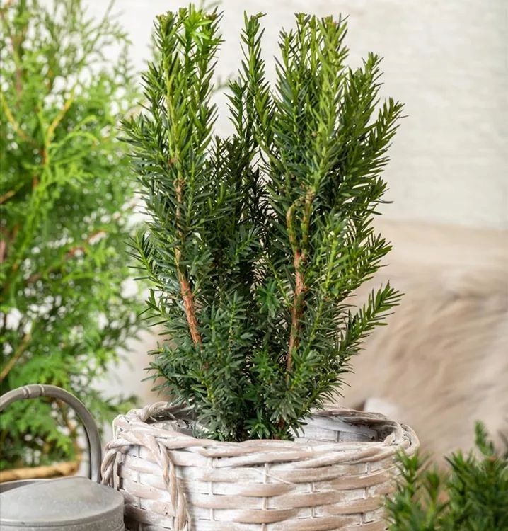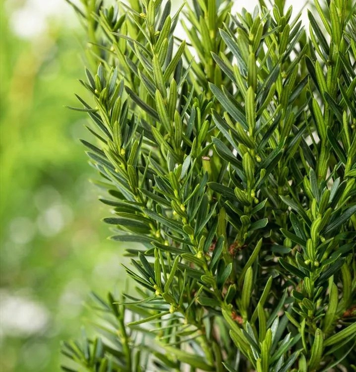 Это разновидность тиса промежуточного сорта со средним годовым ростом. В начальной фазе поперечное сечение растения колонновидное и правильное, но в дальнейшем оно разрастается вбок вверх. На прямостоячих, слегка раскидистых побегах на верхнем слое очень густо растет короткая темно-зеленая и блестящая хвоя, а на нижнем - матовая и светло-зеленая хвоя. Мужские цветки появляются на прошлогодних ветках. Тис промежуточный Hillii – мужской клен, поэтому он не завязывает семена, окруженные характерным красным прицветником.